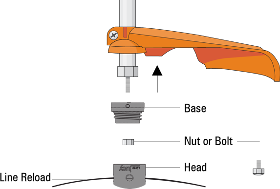5. Attach the littl’ Juey head with Littl’ Juey Line Reload in the holes provided and tighten.